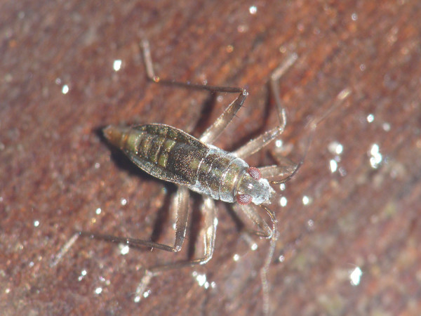 林内の池や渓流沿いなどの薄暗い環境を好みます。やや小型で独特の模様があり個性的な種です。各地に普通と思われますが、あまり気づかれていない可能性があります。なお、本種はMesovelia horvathiのシノニムという見解もありますが、この見解は要検討という見解もあり、地理分布や本種の移動能力などから個人的にはjaponicaを使用していますが、今後はやっぱりhorvathiが正しいということになるかもしれませんので、注意が必要です。あと本土産と南西諸島産がそもそも同じなのかという点も。体長2.1-2.8 mm。