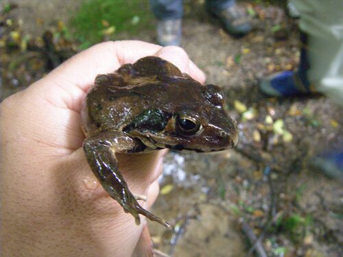 はい、今日も観察会です。 久しぶりに大きなヤマアカガエル。 あごの下にはきれいな模様。 脚が長い。 メール返信等いろいろ滞っていますが順次こなしていきますのでしばしお待ちを。。