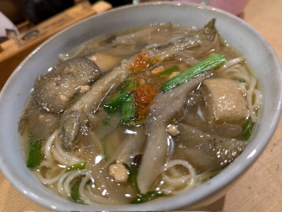 そして色々食べて最後のしめにドジョウ汁!瀬戸内地域ならではのにゅうめんタイプ。これを食べに来たと言っても過言ではありません。忘れられない味となりました。